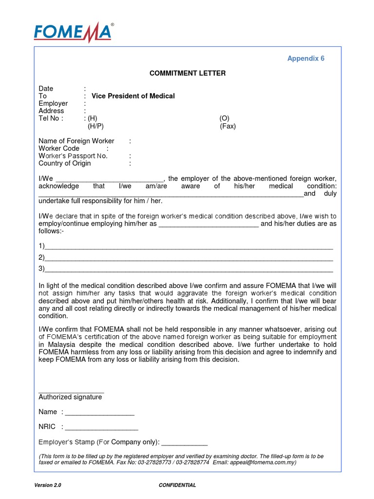 Appendix 6 Pdf Appendix 6 Commitment Letter Date To Employer Address Tel No Medical Department H H P Name Of Foreign Worker Worker Course Hero