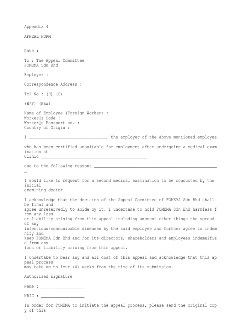 Your credit file contains important information about your spending habits and financial ability. Appeal of FOMEMA Medical Examination Result. Appendix 4APPEAL FORM DateToEmployee Appeal Committee COMMA SDN.